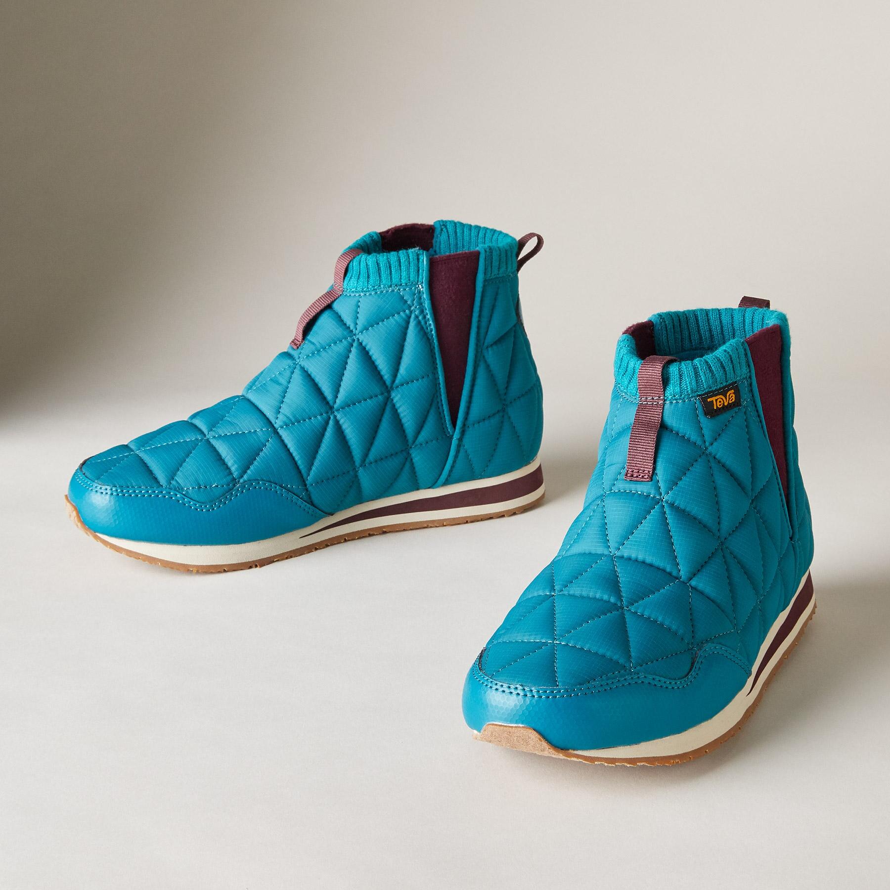 Teva? brings quilted comfort to these sporty and lightweight ‘Ember’ boots. heralded as the lovechild of a sleeping bag and a sneaker. The ultimate travel companion. ultra packable. with flexible rubber soles. Textile. Imported. Whole sizes 6 to 11. 3/4 heel.