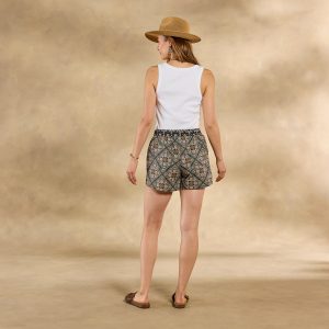 The vibrant print on our Kai Shorts takes center stage in these oh-so-comfortable elastic waist shorts with contrast print on waistband. drawstring tie for fit. back patch pockets. slanted front pockets and flirty side seam slits. Cotton. Machine wash. Imported. Exclusive. Sizes XS (0?C2). S (4?C6). M (8?C10). L (12?C14). XL (16?C18). XXL (20?C22). 4 inseam.