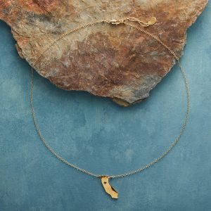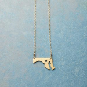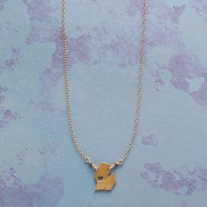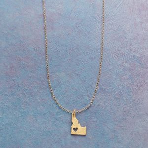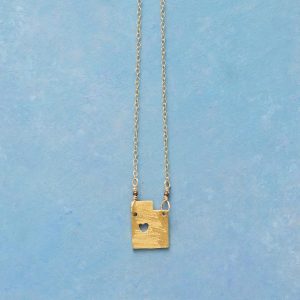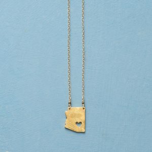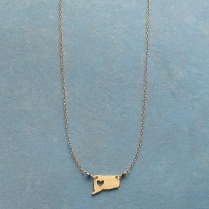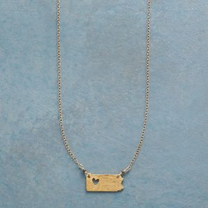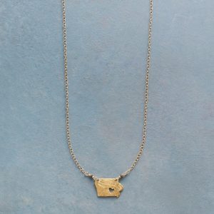 Celebrate your favorite state with our 18kt gold-plated charm strung on a 14kt gold-filled chain. A cut-out heart shows your love. Lobster clasp. Handcrafted. Exclusive. 17-18l