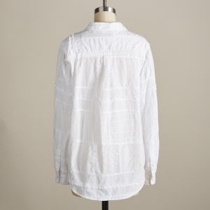 A delightful patchwork of textures embellish this intriguing shirt. a creative mix of dot. pintuck. ruffle and embroidery details. Cotton. Machine wash. Imported. Sizes XS (4). S (6). M (8-10). L (12). XL (14). Approx. 26.75l.